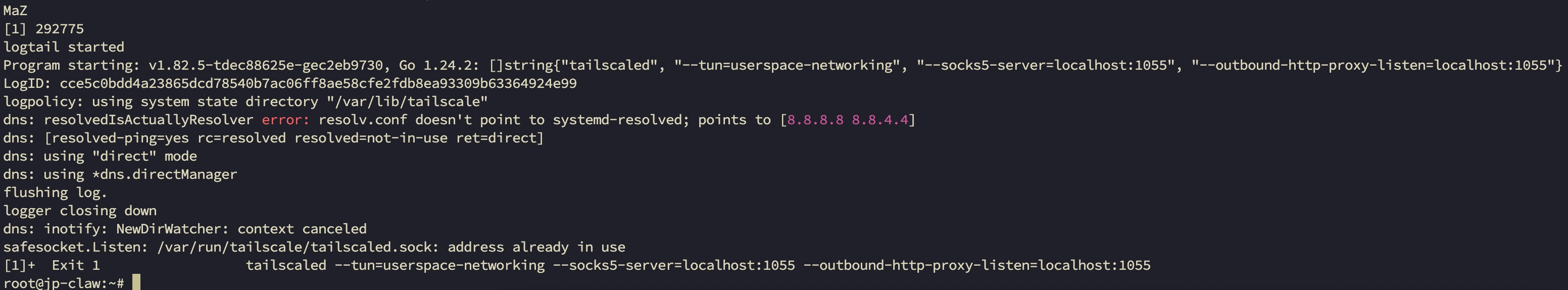 root 292863 0.0 0.1 3880 1804 pts/0 S+ 07:27 0:00 grep tailscaled