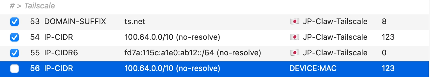 IP-CIDR,100.64.0.0/10,"Tailscale-Proxy",no-resolve