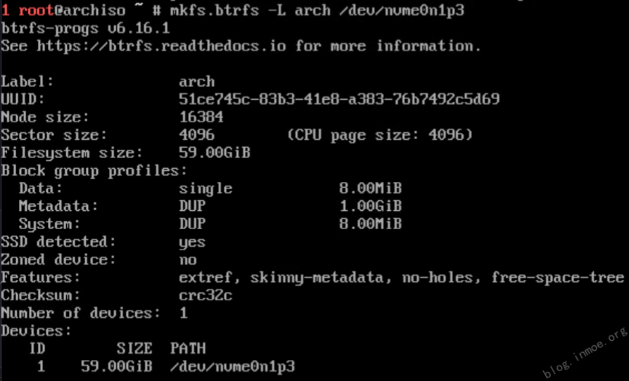 mkfs.btrfs -L arch /dev/nvme0n1p3